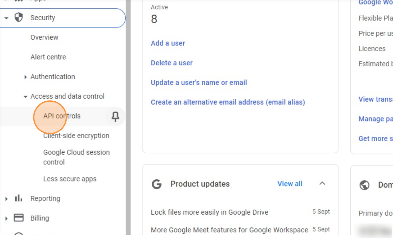 - On the Admin Console Page, go to Menu -> Security -> Access and Data Control -> API Controls
