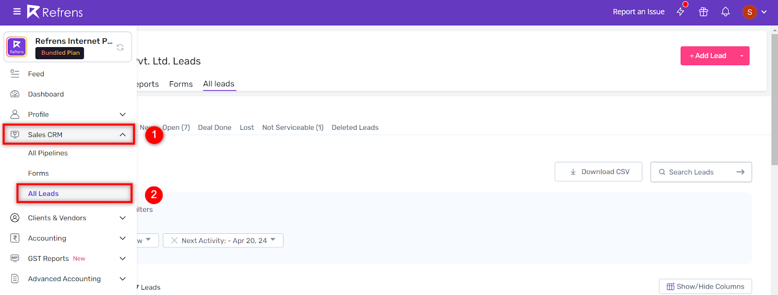Step 1: Go to Sales CRM > All Leads / All Pipelines